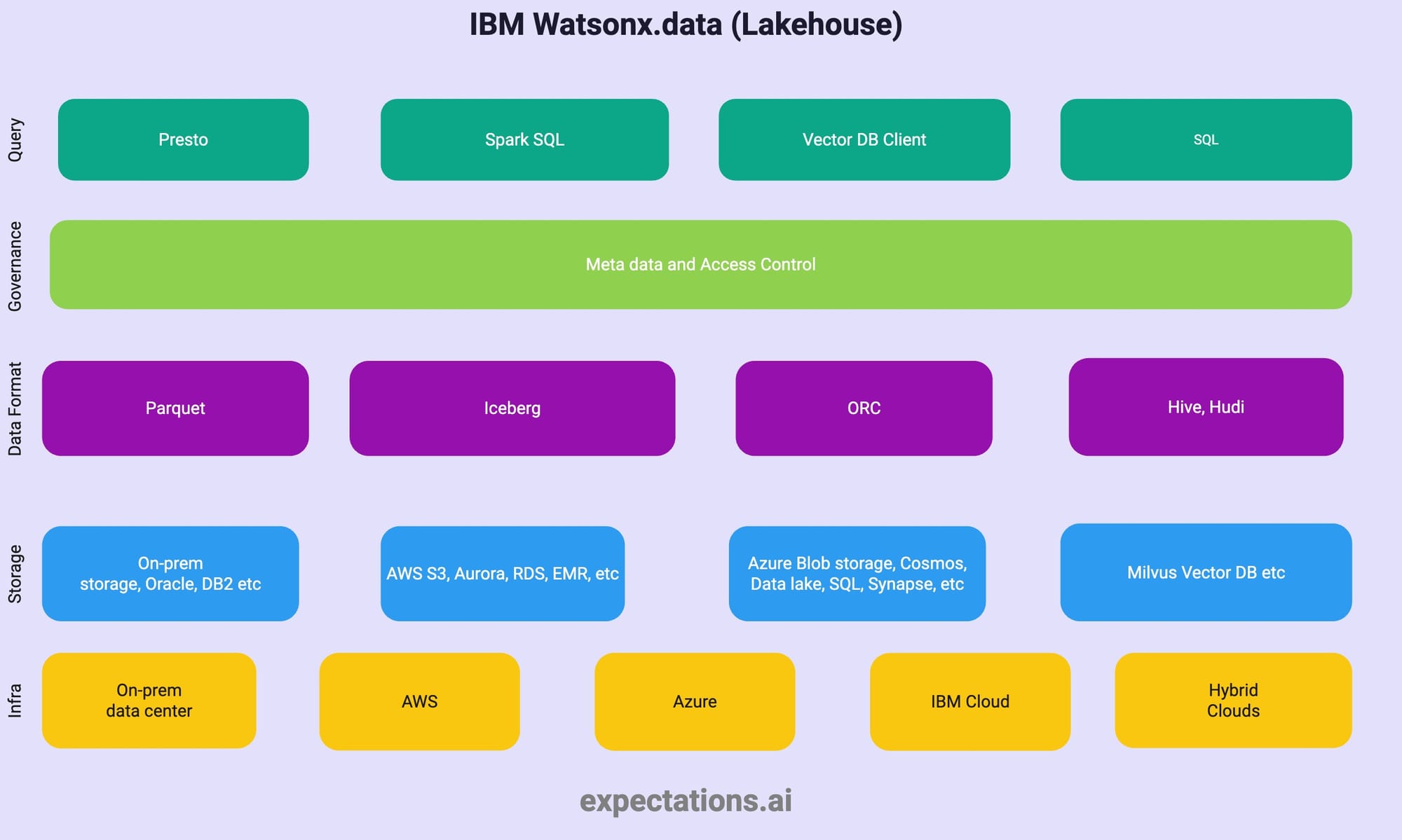IBM Watsonx.data is built on a modern data stack that includes open-source technologies with IBM’s enterprise-grade capabilities.
