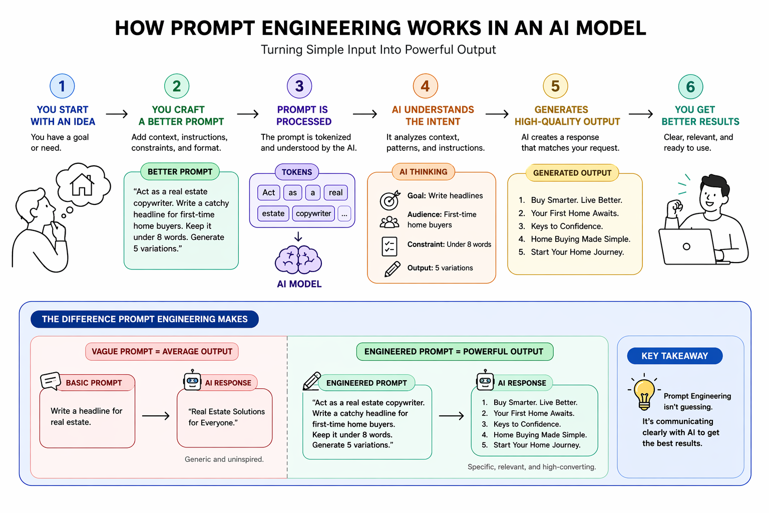The more precise and descriptive your prompt, the more relevant and accurate the AI's response will be.